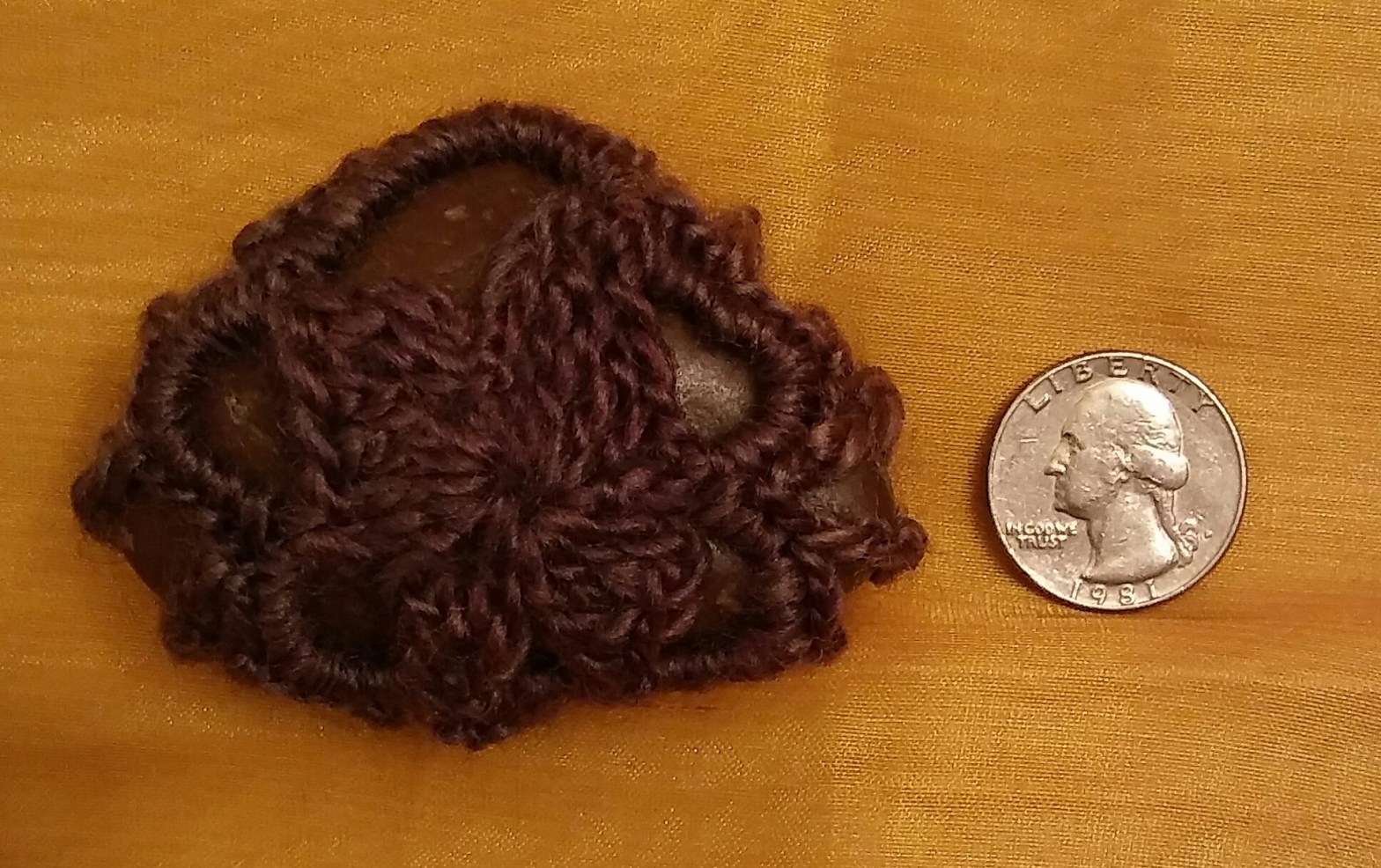 Wine Butterfly Stone: Crocheted-covered, black stone with butterfly pattern. $19.99 (including shipping and tax).