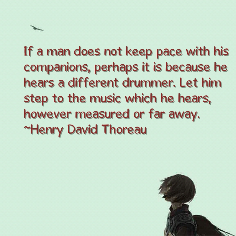 “If a man does not keep pace with his companions, perhaps it is because he hears a different drummer. Let him step to the music which he hears, however measured or far away.” ~Henry David Thoreau