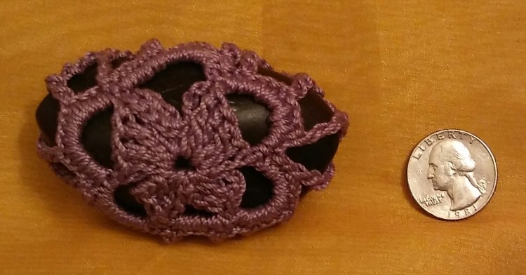 Purple Butterfly Stone: Crocheted-covered, black stone with butterfly pattern. $14.99 (including shipping and tax).