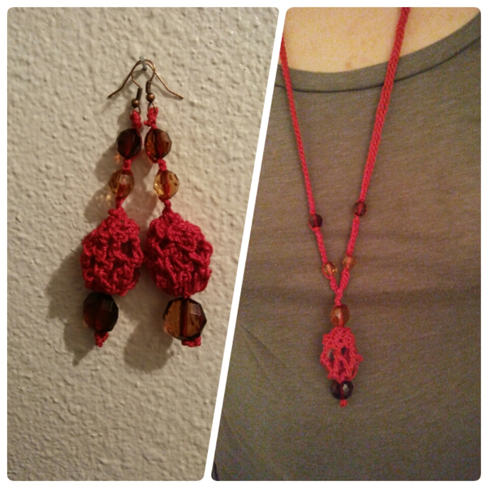 Charmed Crochet Jewelry Sets (Coming Soon!): Necklace and earring sets made with colorful crochet thread over clear-gem facet, with bead-accents, crocheted, in the cord. Sets will sell for $24.99 (shipping and tax is included in the price). Watch this space for the new additions.
