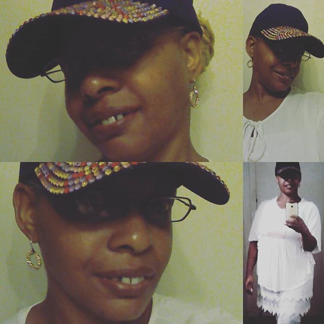 Black hat with multi-colored bling. For those days when you can’t figure out which color to wear or if you don’t have a hat the color you wish to wear. Either way, it’s great in a pinch.