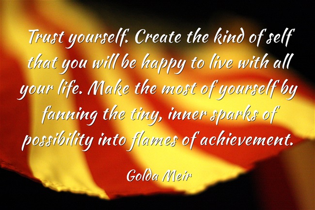 “Trust yourself. Create the kind of self that you will be happy to live with all your life. Make the most of yourself by fanning the tiny, inner sparks of possibility into flames of achievement.” ~Golda Meir