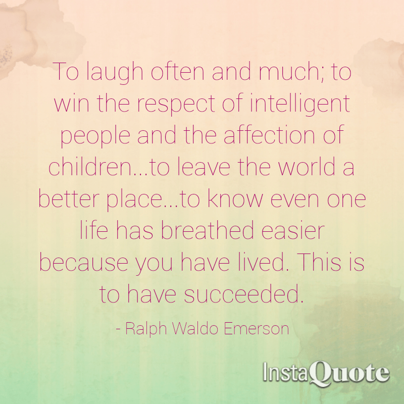 “To laugh often and much; to win the respect of intelligent people and the affection of children … To leave the world a better place … To know even one life has breathed easier because you have lived. This is to have succeeded.”~Ralph Waldo Emerson