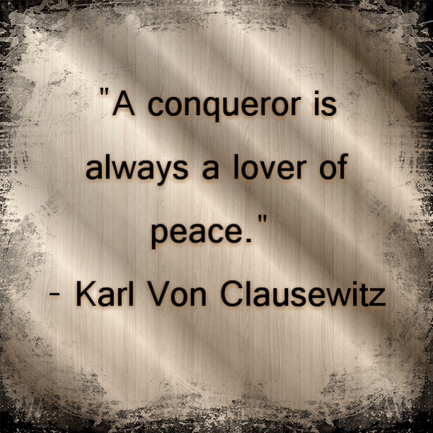 “A conqueror is always a lover of peace.”~Karl Von Clausewitz