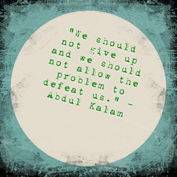 “We should not give up and we should not allow the problem to defeat us.”~Abdul Kalam