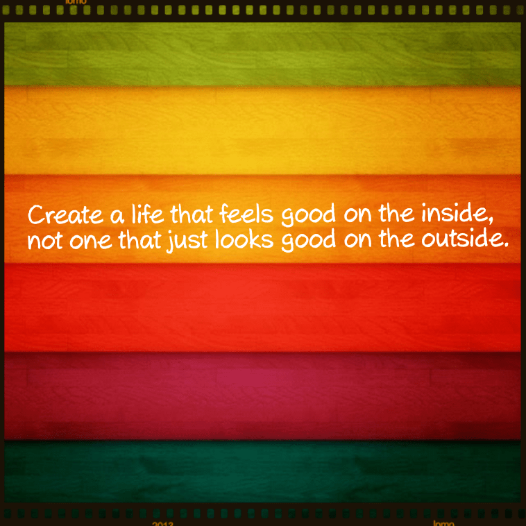 “Create a life that feels good on the inside, not one that just looks good on the outside.” ~Unknown