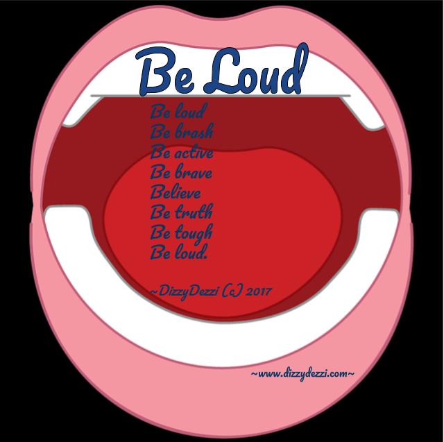 Be loud Be brash Be active Be brave Believe Be truth Be tough Be loud. ~DizzyDezzi (c) 2017 ~www.dizzydezzi