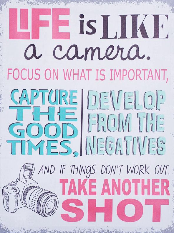 “Life is like a camera. Focus on what is important, capture the good times, develop from the negatives and if things don’t work out take another shot.”