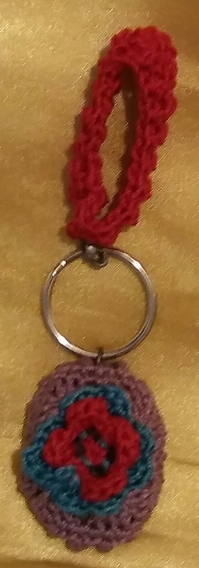 Craft of the Day: Red/Turquoise Crochet Flower Keychain