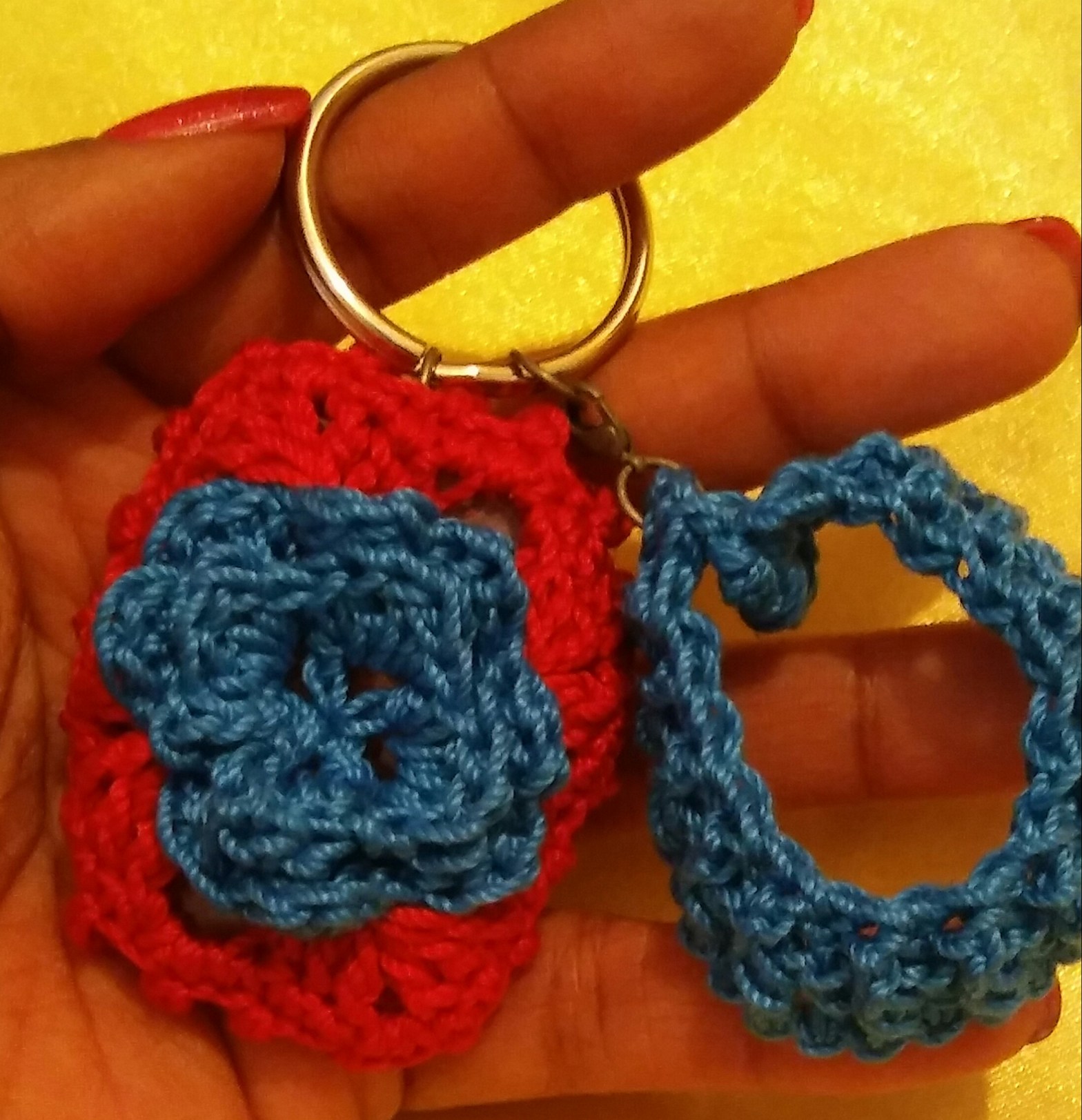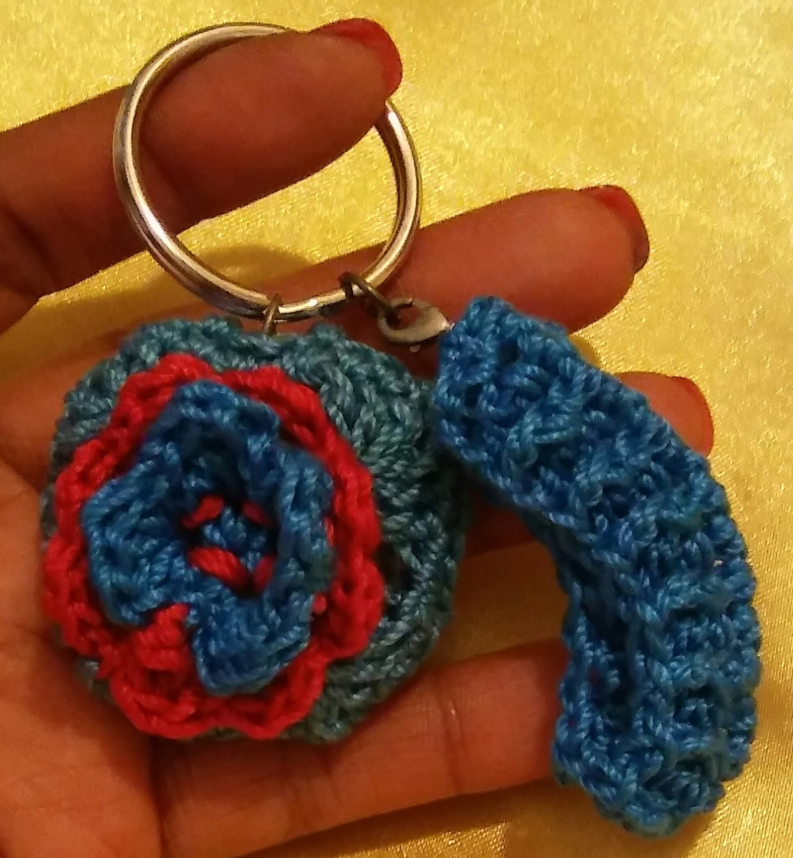 Craft of the Day: Blue/Red Crochet Flower Keychain